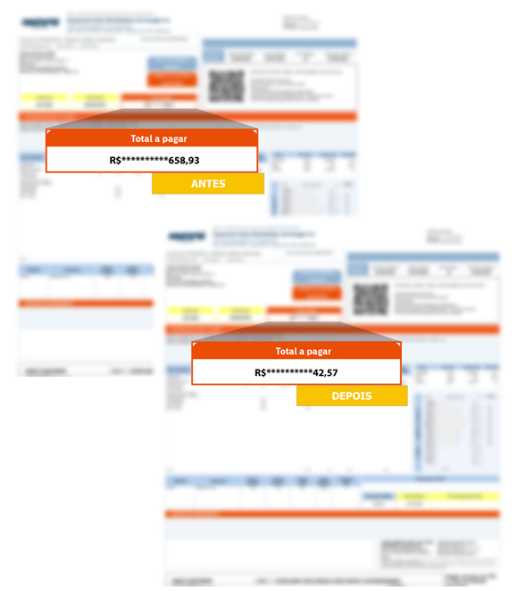 Redução da fatura de energia em até 95%, que inicia imediatamente após a instalação.